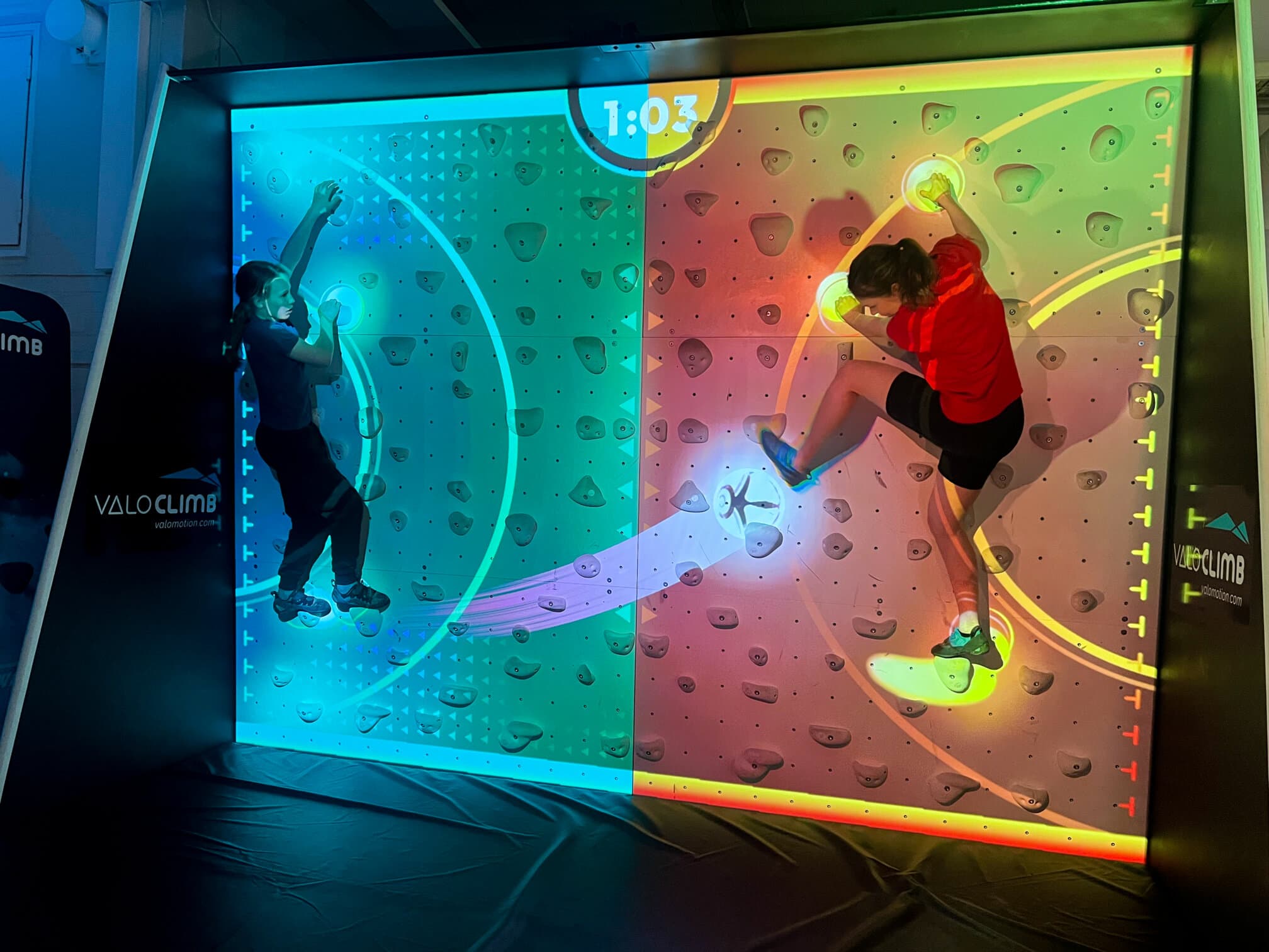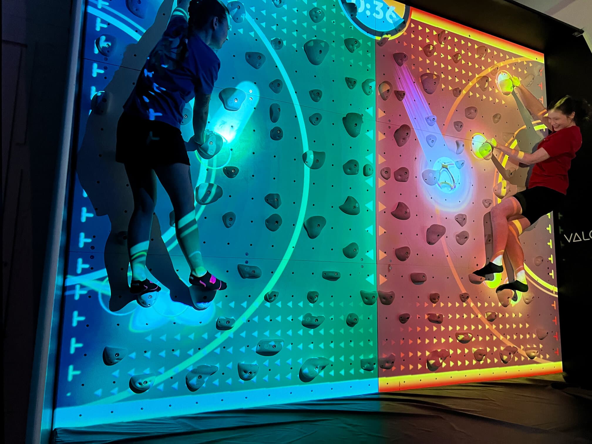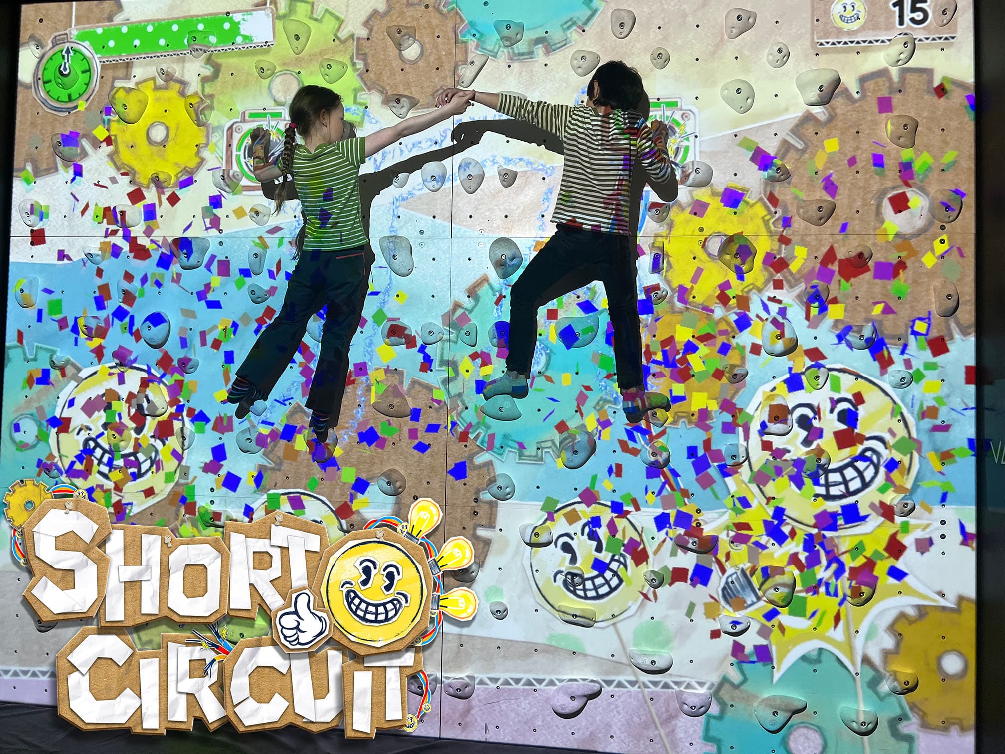 An electrifying exergame for the ValoClimb that combines bouldering with puzzle-solving and cooperation. Up to 4 players complete electrical circuits, earning points by holding difficult poses.
