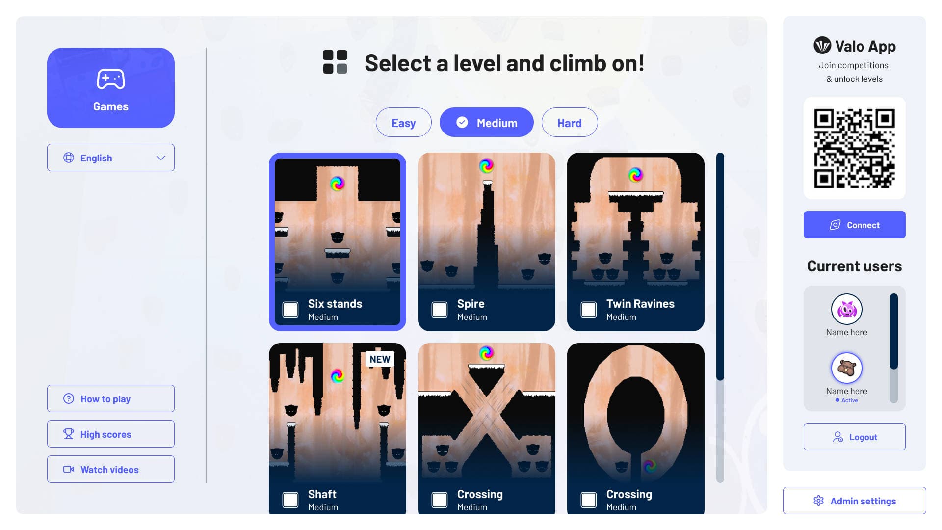 I designed the refreshed player-facing touchscreen user interface of the ValoClimb.